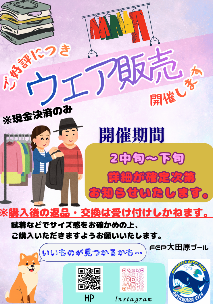 2月ウェア販売開催!