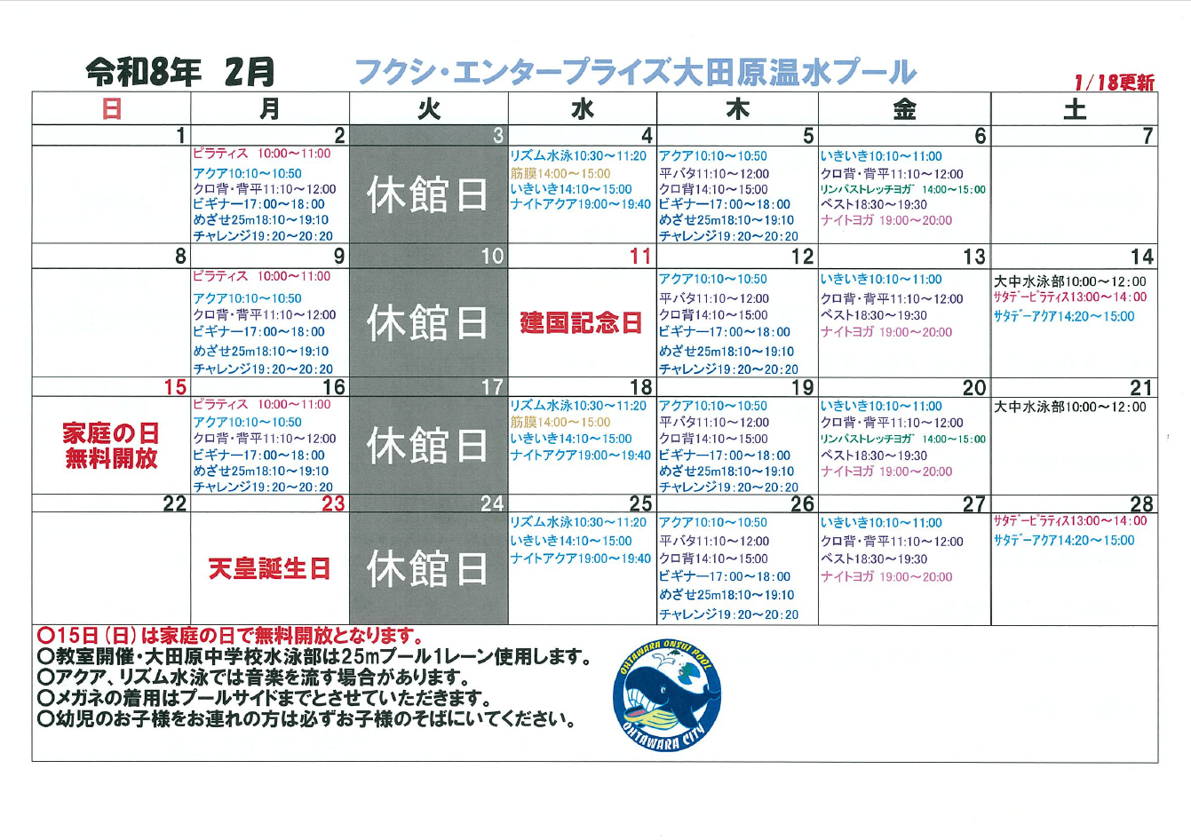 令和8年 2月予定表【大田原】